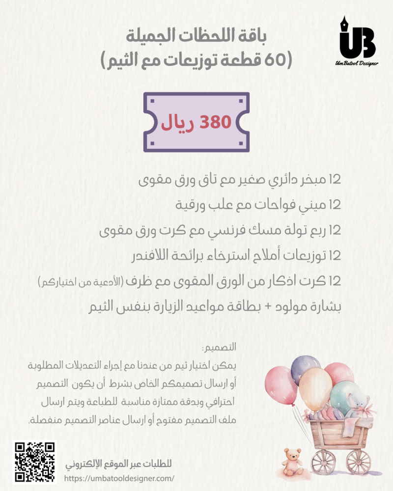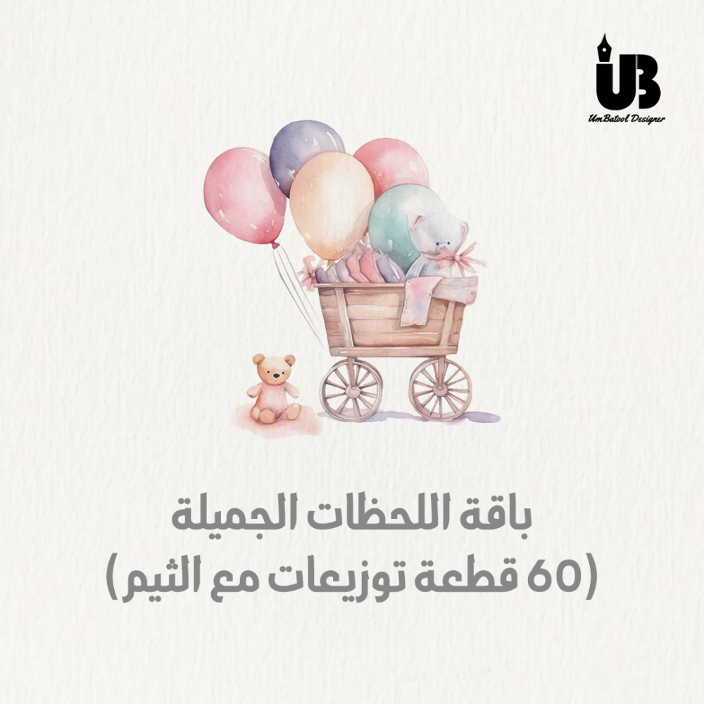 مجموعة من 60 قطعة توزيعات من 5 أنواع مختلفة مع التنسيق بثيم المناسبة:
