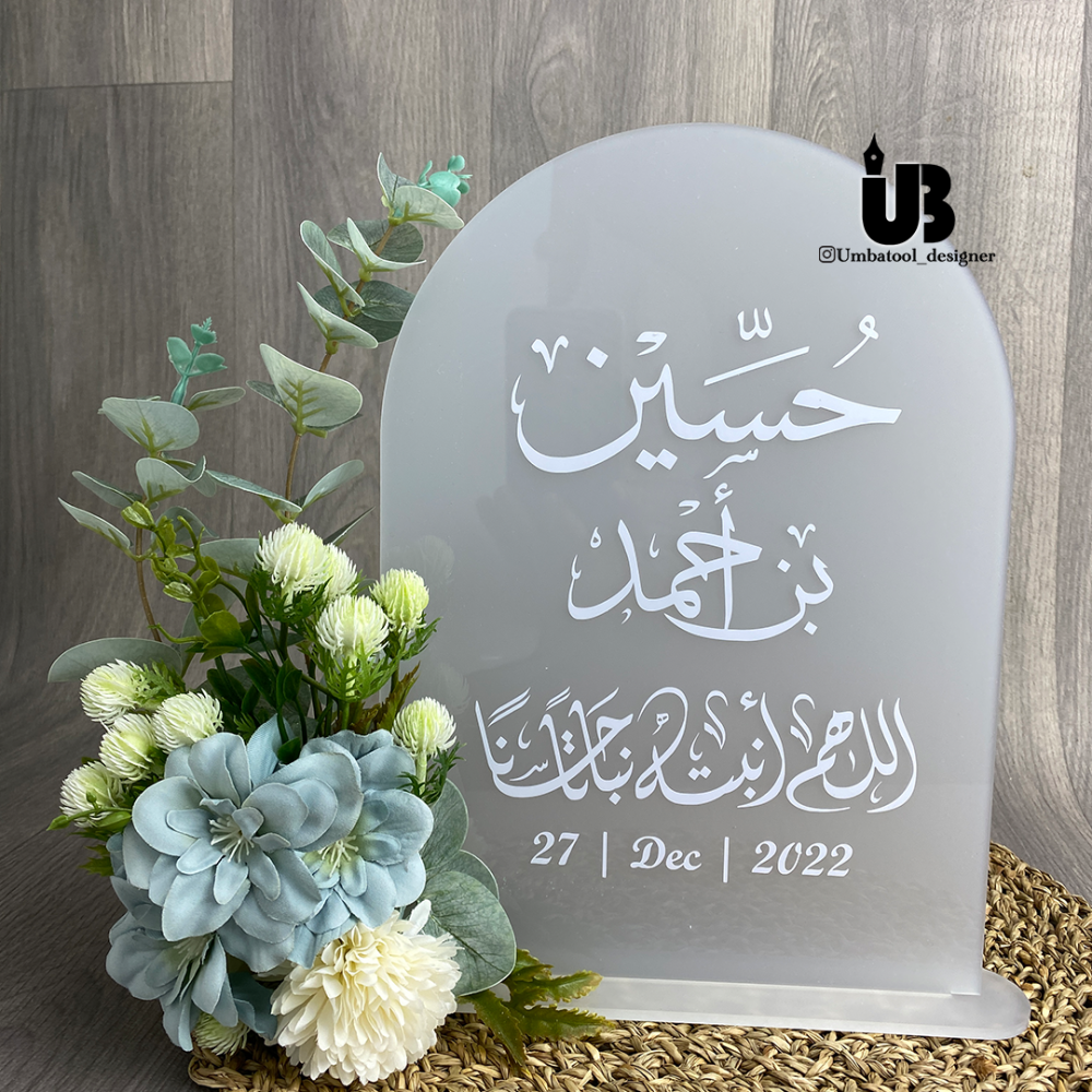 الكتابة متوفرة باللون الابيض أو الذهبي أو الاسود أو الفضي