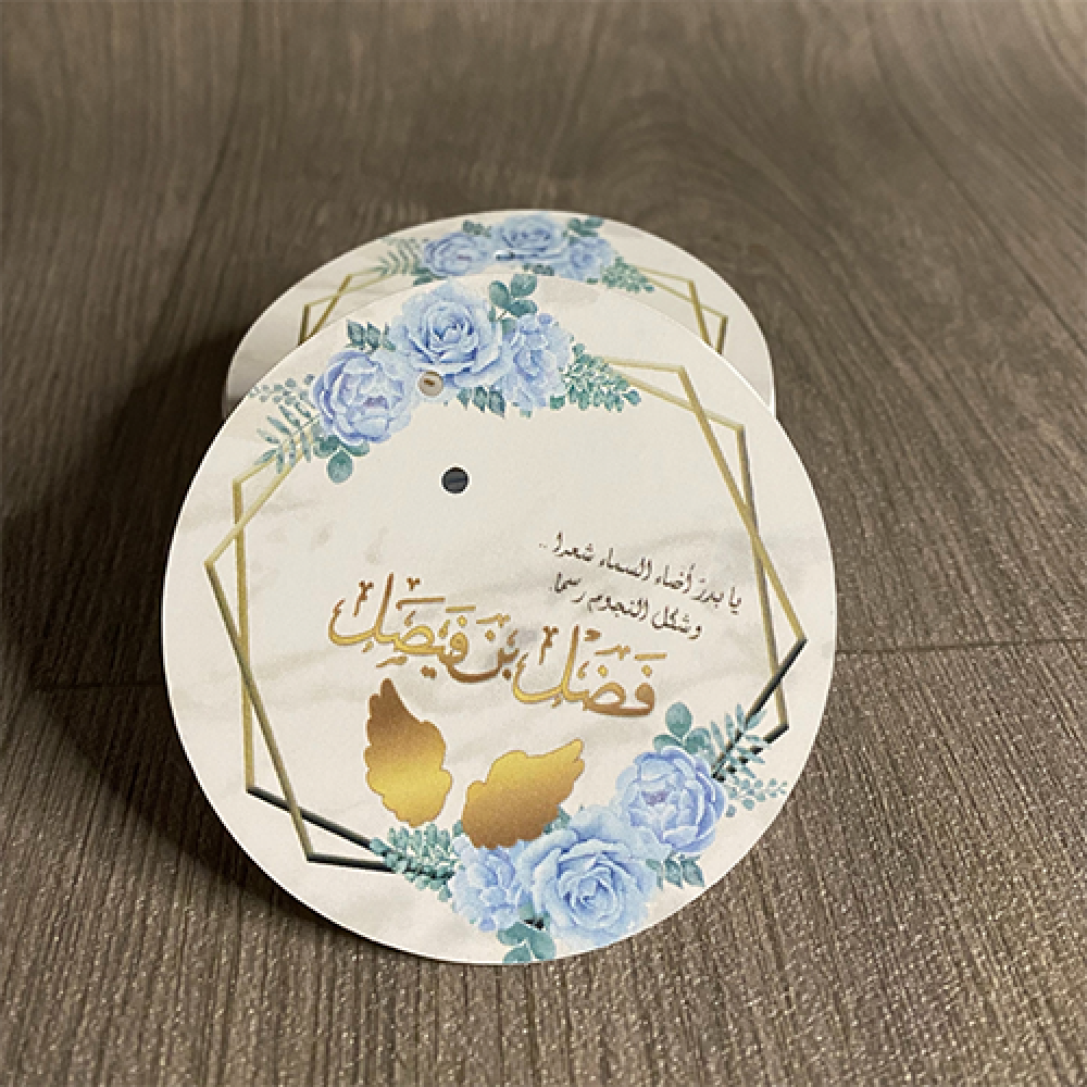 كرت مقاس 7.5 سم في 7.5 سم يمكن طباعته وقصه باي تصميم حسب الطلب